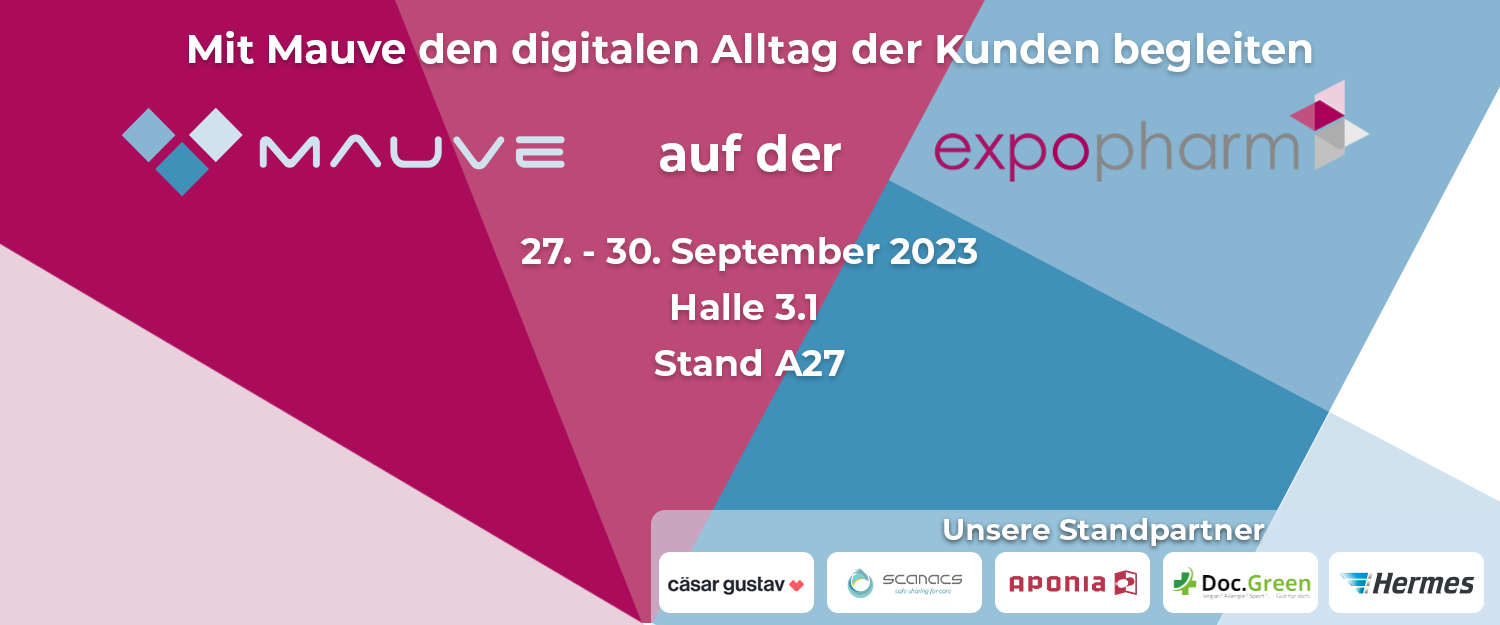Wenn sich vom 27. bis 30. September 2023 in Düsseldorf die Tore zur expopharm 2023 öffnen, ist Mauve selbstverständlich auch wieder mit von der Partie. An unserem Stand in Halle 3.1/Stand A 27, an dem in diesem Jahr auch aponow/Doc.Green, aponia, Hermes, die Digitalagentur cäsar gustav und scanacs vertreten sind, erwartet Sie eine Fülle an interessanten Themen, Angeboten und Insights.