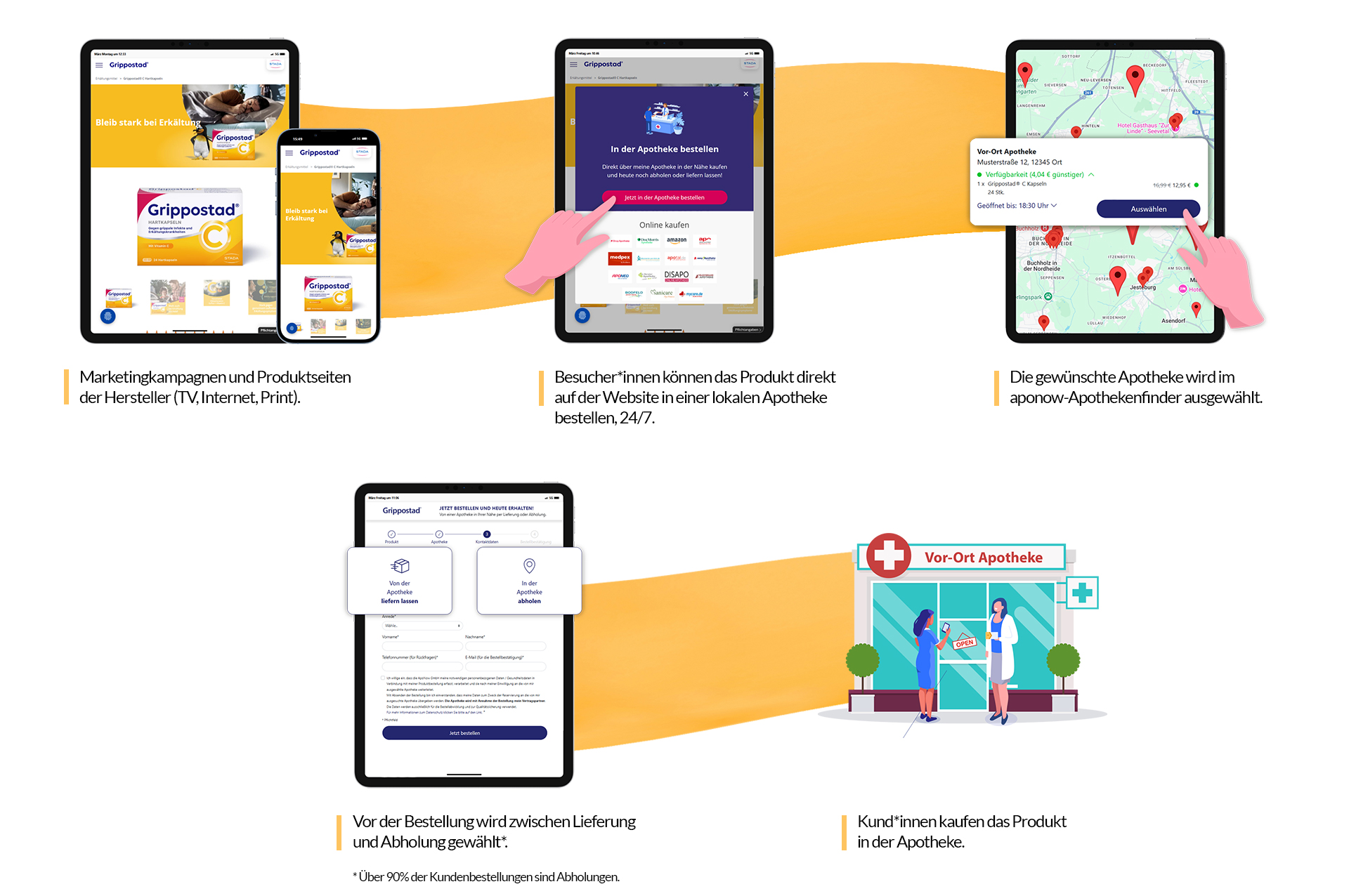Um der Frage „ Und was kostet das?“ gleich vorwegzugreifen: aponow ist für Apotheken tatsächlich komplett kostenfrei. Hersteller investieren in TV-, Print- und Social Media-Markenkampagnen, um Konsumenten für ihre Produktwebseiten zu interessieren. Dort integrieren sie aponow, damit die Produkte direkt in einer lokalen Apotheke bestellt werden können. Die Online-Kunden kaufen das Produkt in einer Vor-Ort-Apotheke, die sie vielleicht sogar zu Stammkunden macht - und dafür zahlt die Apotheke keinen Cent.